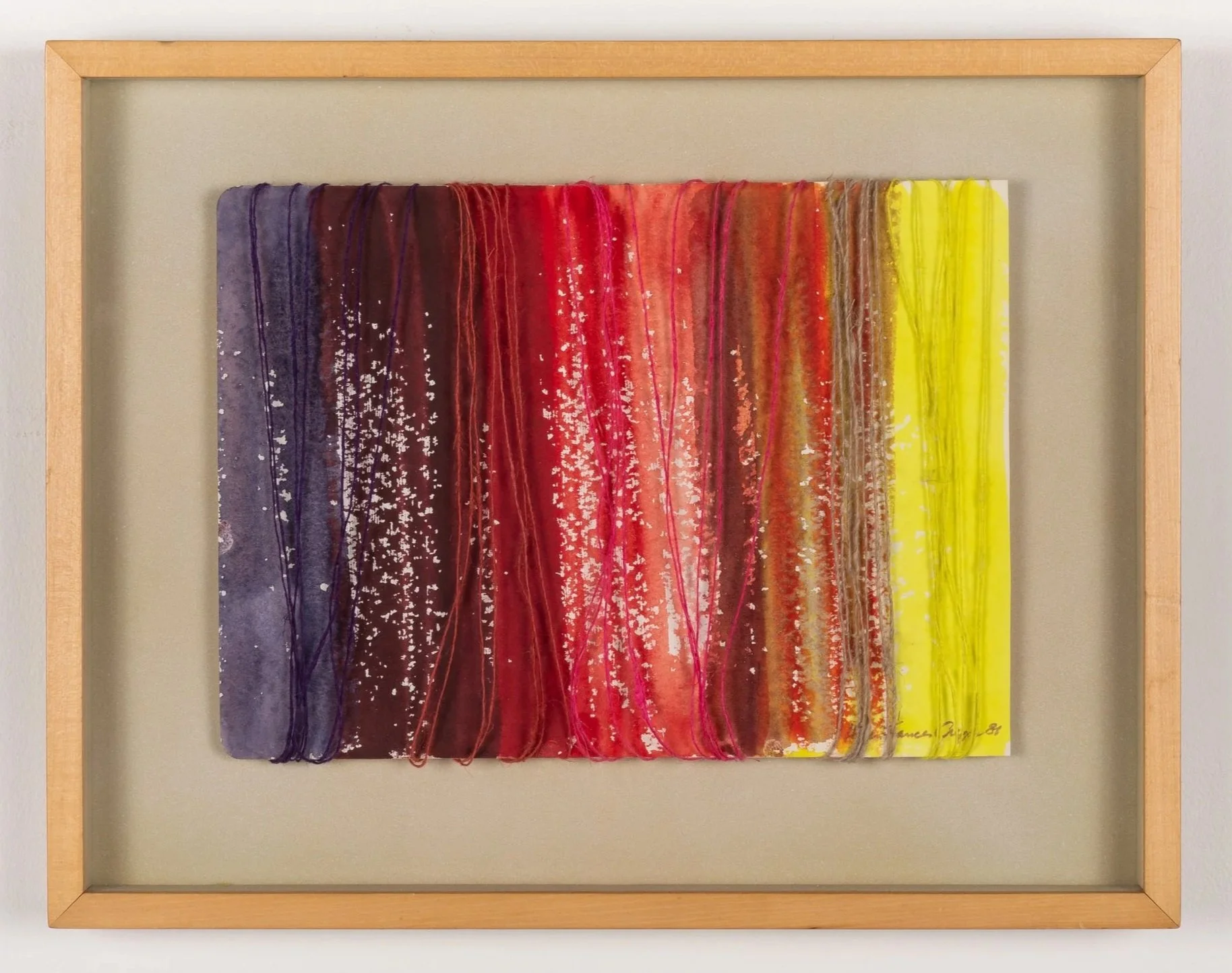 Watercolours, paper, wool yarn, wood